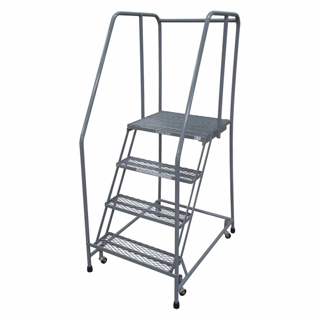 Little Giant Ladders model with a working platform. Helps us keep employees from working in the pipe racks or from reaching/stretching out.